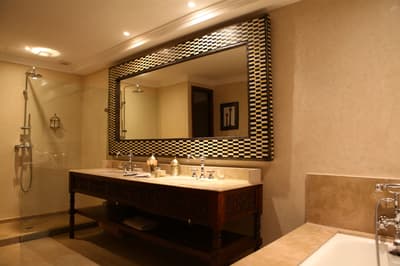 D’un style marocain avec des designs d’époque, elle offre une expérience immersive et authentique. Elle baigne de couleurs sobres et neutres, mais est néanmoins lumineuse grâce à sa fenêtre et sa porte vitrée. Les meubles en bois foncés ajoutent de l’élégance à la pièce et des tableaux ornant plusieurs murs la rendent vivante. Quelques touches de couleurs vives égaient l’ensemble.