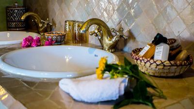 Elle offre une expérience typique de la campagne marocaine. Les murs sont de couleur neutre et sobre, mais plusieurs éléments de l’ensemble sont de couleur vive et égaient la pièce. Le cadre est idyllique, idéal pour se ressourcer et se couper du quotidien. Des éléments de la décoration en rotin y ajoutent une touche d’exotisme.