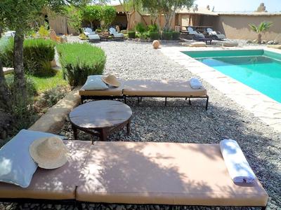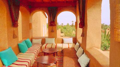 Un verger, un potager, un jardin aromatique pour les tisanes et des terrasses avec vue panoramique sur des dizaines de bouquets de palmiers: aux Jardins de Skoura, difficile de résister à l'appel du vert! Dans ce domaine avec piscine planté au coeur de la palmeraie, l'une des plus belles du Sud marocain, les murs en pisé font écho à ceux des kasbahs alentour et le jardin aux mini-oasis créées au pied des palmiers : au Maroc le jardin signifie tout à la fois champ et potager! On 'y déconnecte sur la route du désert, au rythme de la vie paysanne. La table est locavore, en direct du potager maison ou de ceux des voisins, et il suffit d'enfourcher un vélo ou de chausser ses baskets pour flâner entre les kasbahs aux épais murs de terre puisés dans le sol, à la rencontre des habitants de l'oasis, fellahs, potiers ou tisserands. Prévoyez large pour le timing, le thé à la menthe c'est comme les drinks, l'un appelle l'autre, mais aussi pour les bagages, vous allez sûrement craquer pour la déco du bled! Surtout quand vous aurez pu vous poser dans l'une des 8 chambres et suites qui s'égrènent entre terrasses, patios et jardin, leur look est si inspirant! A deux, on devient vite addict aux apéros/couchers de soleil sur les terrasses et en famille, au grand jardin et aux petites attentions du personnel.