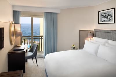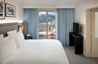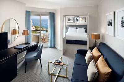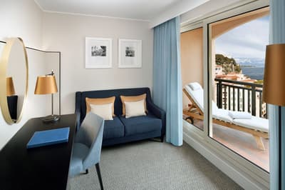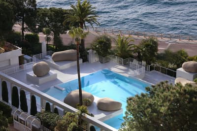 Voilà un boutique hôtel où on se sent bien : bienvenue au Columbus Monte-Carlo ! Les espaces communs sont superbes et hyper comfy, comme le salon avec sa bibliothèque, ses fauteuils où il fait bon prendre un thé et ses fenêtres design arrondies sur fond de végétation luxuriante. Sans oublier la magnifique suspension du hall d’accueil qui fait tout de suite arty. Les chambres ? Simples mais très chic, avec des dégradés de bleu, des notes de bronze et des prédominances de gris, de beige et de blanc. Les photos black & white offrent un joli contraste, en écho à cette décoration. Les lits sont top : une semaine ici et vous rattrapez tout votre sommeil en retard ! Quant aux vues, elles dépaysent et apaisent en même temps. Et notre petit coup de cœur, vous l’aurez deviné, c’est quand même le panorama sur la mer. Ou la vue mer + roseraie, tant qu’à faire ! Parce qu’il n’y a rien de plus agréable que de prendre son p'tit déj' sur le balcon chaque matin et de terminer la journée avec un verre de rosé face au sunset. Ouais, ça fait un peu cliché, mais c’est tout ce qu’il vous faut pour passer de bonnes vacances ! Bon, l’accueil incroyable y est aussi pour beaucoup. Bonus à noter : vous aurez accès à une piscine partagée pendant la belle saison !
