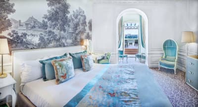 L’Hôtel Hermitage Monte-Carlo, c'est un vrai palace, à la fois intime et grandiose ! On s'en rend compte dès l’arrivée, devant la magnifique façade se dressant sur le square Beaumarchais. Et que dire du décor de la Belle Époque ! Moulures, colonnes en marbre, mosaïques au sol, lustres en cristal, arches... Whaou... Le tout sublimé par de grandes plantes en pot et des palmiers d’intérieur, aux côtés de murs au délicat vert amande. L’hôtel regorge aussi d’espaces confidentiels pour prendre un thé ou se reposer, loin du quotidien. Les couloirs, longés de fenêtres en arc et aux panneaux de verre, semblent mener à de nombreux trésors. Mais le clou du spectacle, c'est le jardin d’hiver, sous une coupole de verre signée Gustave Eiffel. Quand vous y allez, vous avez l’impression d’avoir réservé les Galeries Lafayette Haussmann rien que pour vous ! Les hébergements ont aussi ce côté luxueux et romantique, où on se sent bien. Coup de cœur pour les papiers peints fleuris et le mobilier d’époque ! Et si votre chambre ne possède pas de vue sur la mer, direction la terrasse panoramique du resto étoilé. Un hôtel zéro-défaut, où vous reviendrez chaque année si vous pouvez.