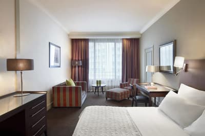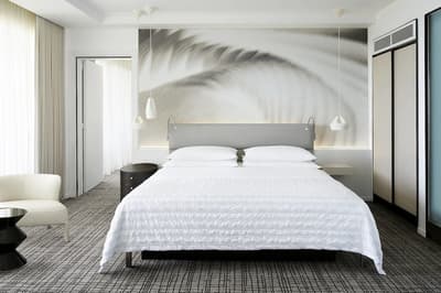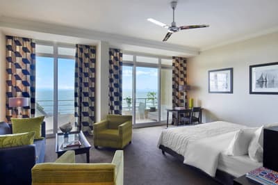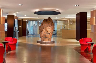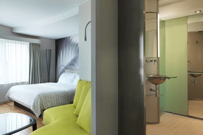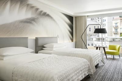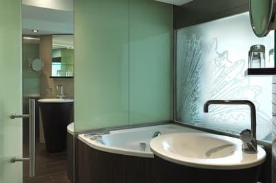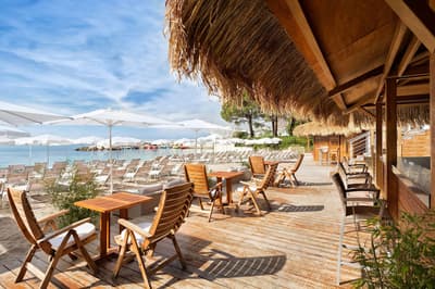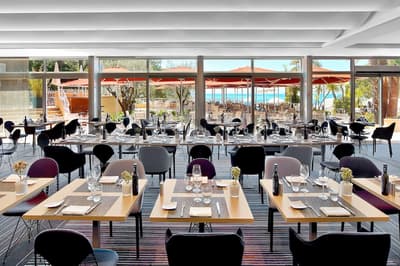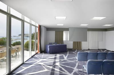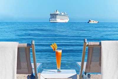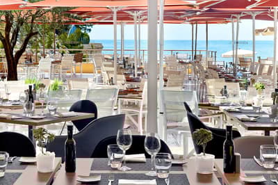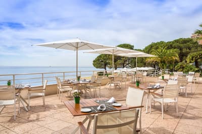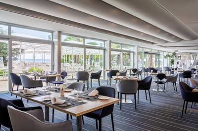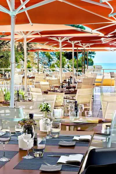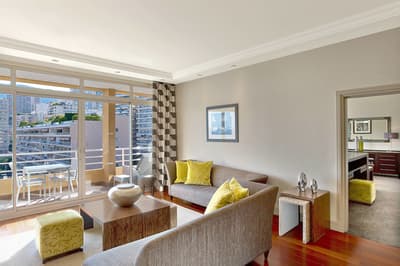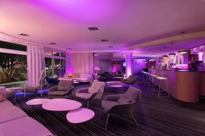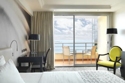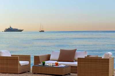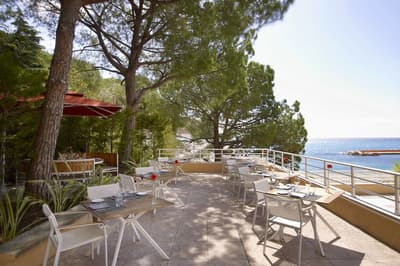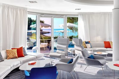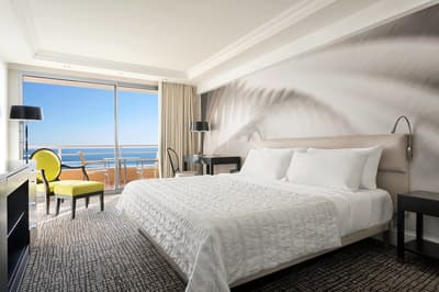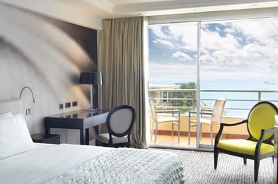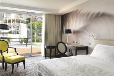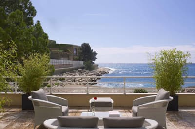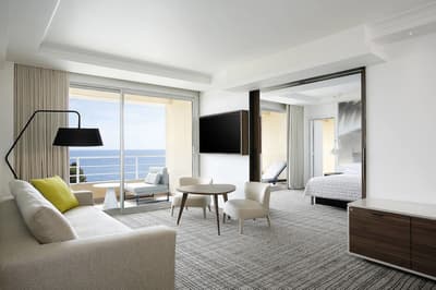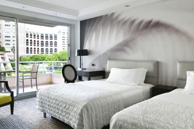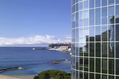 Le clou du spectacle au Méridien Beach Plaza : les chambres design ! Avec leurs fenêtres panoramiques, tout en courbes, et leur déco... design, elles sont juste uniques. Elles se situent dans les deux tours de cristal de ce grand bâtiment jaune. Dans l’ensemble, le style de cet hôtel est moderne et minimaliste. Ça se remarque dès l’entrée, avec ce poing géant dans le hall d’accueil, mais aussi dans les salons communs, où des bibliothèques épurées séparent les espaces. On trouve des meubles aux formes arrondies dans toutes les pièces et des lumières flashy, à la nuit tombée, illuminent la piscine et le bar. Vous allez adorer le grand bassin extérieur, bordé de pins, mais surtout la plage privée - le Méridien est le seul hôtel à en posséder une à Monaco ! Allongés sur les transats, vous pourrez regarder passer les yachts sur la Méditerranée, en rêvant à une vie plus VIP. Bon, là où vous êtes, c’est déjà pas mal quand même. De certaines chambres, on a d’ailleurs l’impression d’être sur un bateau tant la vue sur la mer semble infinie, sans rien autour ! Emporter sa serviette et faire quelques brasses matinales, prendre son p'tit déj' en terrasse, chiller au bar paillote… Une belle routine s’installe dans cet hôtel.
