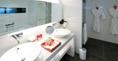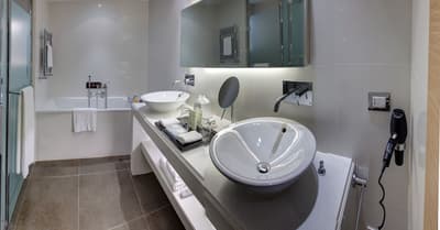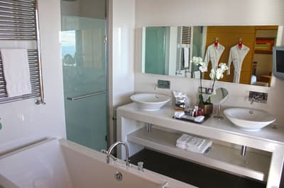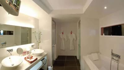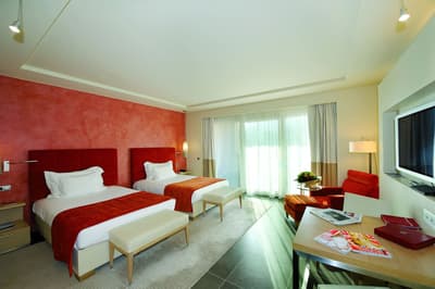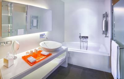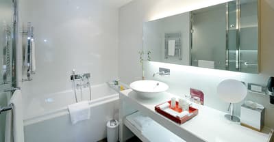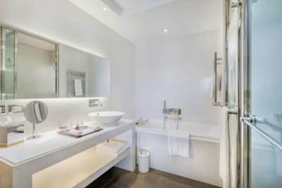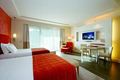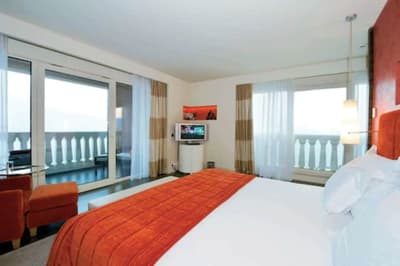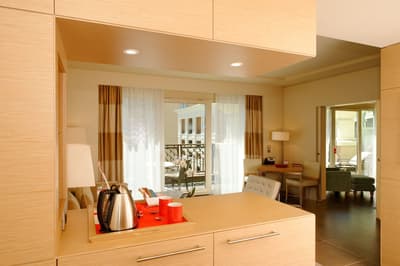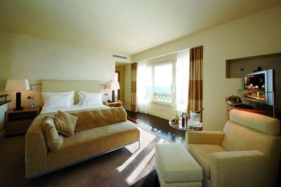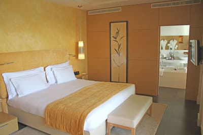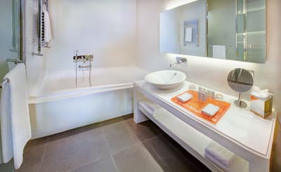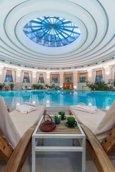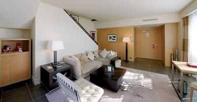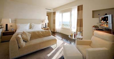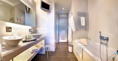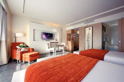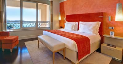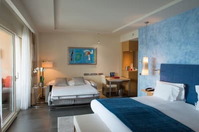 Une véritable oasis à Monaco ! Le Monte-Carlo Bay Hotel & Resort est ultra-dépaysant… Vous avez l’impression d’avoir atterri sur une île, voire dans un conte de fées. Il semblerait aussi que le bâtiment rose et la longue piscine lagon, ponctuée de pavillons, rochers, cascades, petits ponts et verdure, soit collée au décor tellement tout est irréel ! Ce que vous ne voyez pas au premier abord, c’est que le fond de ce bassin extérieur XXL est tapissé de sable… Le paradis ! La piscine intérieure est elle aussi à tomber. Cette rotonde surmontée d’un puits de lumière ressemble à la serre d’un jardin botanique, tant il y a de plantes. Sur la péninsule du Larvotto, l’hôtel offre également un accès à la mer. Magique ! Il manque juste quelques transats pour que tout soit parfait. Vous l’aurez compris, les chambres ne sont clairement pas l’endroit où on passe la majorité de son temps dans cet hôtel. Elles sont tout de même élégantes, contemporaines et simples, avec une touche de couleur typiquement méditerranéenne. Les vues sur Monaco, quand les immeubles s’illuminent à la nuit tombée, contribuent à l’effet waouh dès l’arrivée. Ambiance décontractée, plus vivante que calme, qui plaît surtout aux familles mais aussi aux couples !