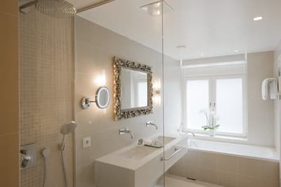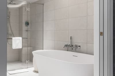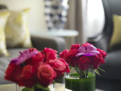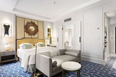 Superbe ! Cette belle suite a tout ce qu’il faut pour un séjour des plus agréables et confortables. Idéale pour un couple, elle baigne dans une atmosphère romantique et sereine. Elle accommode un grand lit king et dispose d’un salon meublé de beaux fauteuils. Salle de bain avec baignoire et douche.