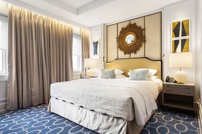 Spacieuse pour une chambre simple, elle a tout le nécessaire pour un séjour absolument confortable. Idéale pour les voyageurs solos, elle accommode un lit queen et dispose d’un bureau dans un coin de la pièce. Salle de bain douche ou baignoire.