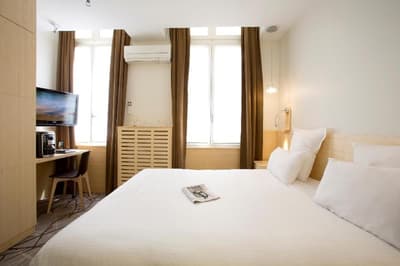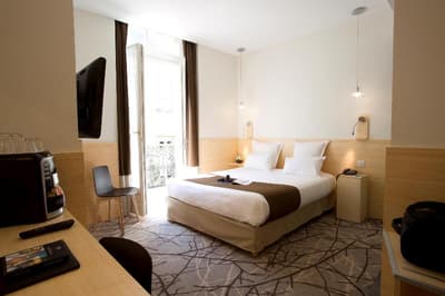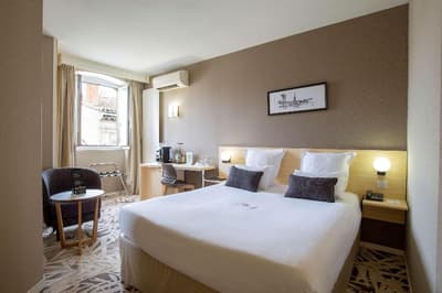 1987, c'est l'année où Jean, le papa, rachète cet hôtel alors en piteux état. Quelques mois de travaux plus tard, l'endroit ouvre ses portes, tout beau et fraîchement rénové. C'est aujourd'hui Frédéric, son fils et son épouse, Sandrine, qui tiennent les rênes de cet établissement dont l'histoire est multiple, à la fois historique, culturelle et familiale. Situé au cœur du Bordeaux historique, le Grand hôtel français est un hôtel de grand standing. Moulures, corniches, parquet, pierre, luminaires lumineux et escalier majestueux sont au rendez-vous. Mais ce n'est sûrement pas tout : ici, vous bénéficiez d'un accueil chaleureux, de ceux qui vous font vous sentir vraiment bienvenu. Frédéric, en maître des lieux vraiment passionné et investi, vous raconte avec plaisir l'hôtel, son histoire, Bordeaux, les bonnes adresses... Et puis le Grand hôtel français, c'est aussi le premier hôtel de Bordeaux à avoir obtenu le label écologique européen ! Preuve de l'engagement des proprios et de l'équipe en matière de préservation de l'environnement. Là non plus, Frédéric ne sera pas avare de paroles. Et pour la petite info, le Grand hôtel français participe au projet « Protégeons les abeilles! », et parraine une ruche non loin d'ici, dans le vignoble.