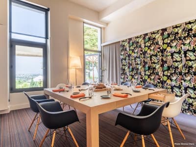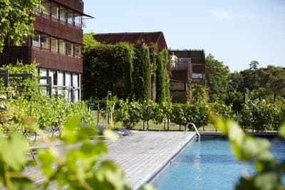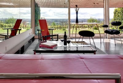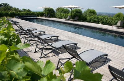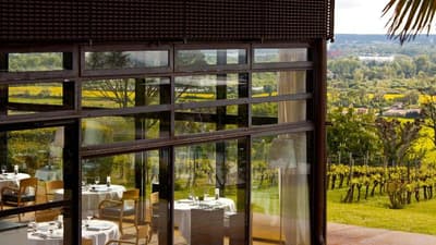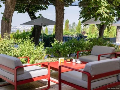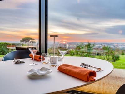 Le point commun entre la tour Agbar à Barcelone, le musée du Quai Branly à Paris et le Saint-James à Bouliac, vous le connaissez ? A part leur forme singulière, leur style épuré et le fait d'être recouverts de verre, de murs végétaux et de matériaux bruts, ces bâtiments sont l'œuvre de Jean Nouvel. Oui, c'est bien le grand architecte français qui est venu poser ses outils en 1989 à Bouliac, « le balcon de Bordeaux », pour transformer cette longère du XVIIIe en hôtel chic et resto choc ! Chic et choc, mais aussi tourné vers la nature environnante, l'autre marque de fabrique de M. Nouvel. Depuis 30 ans maintenant, ce lieu est devenu emblématique dans la région. Les Bordelais comme les touristes y viennent se régaler de saveurs aussi raffinées qu'originales au restaurant étoilé. Mais aussi profiter de ce paysage tellement beau qu'il en devient hypnotisant... Vous saviez qu'après-guerre, on venait déjà ici respirer et se détendre ? Alors à vous, maintenant ! On vous laisse respirer et profiter, au choix, de votre hébergement, d'un succulent repas, d'une baignade ou... d'un cours de cuisine proposé dans l'école de l'établissement ! Et au fait, "Saint-James", c'est en référence à la célèbre rue du centre historique de Bordeaux, pour la p'tite info.