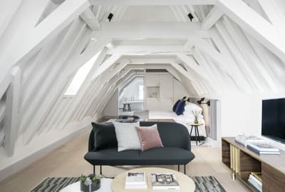 Dans une décoration contemporaine, elle comprend un mobilier minimaliste, des accessoires tendances et se complète dans des tons neutres. La chambre est dotée d’un lit double et la salle de bains en marbre bleu est équipée d’une douche à effet pluie à l'italienne. Ambiance conviviale !