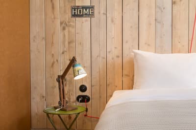 Avis aux amateurs de city-break artistiques : pour écumer les musées Rembrandt, Van Gogh et Stedelijk, difficile d’être mieux placé que le Max Brown Museum Square ! Dans ce quartier résidentiel plutôt huppé, traversé par le grand parc Vondel, pas besoin de transports en commun pour découvrir ces collections uniques ! Le Max Brown est à moins de 5 minutes à pied. Première surprise à votre arrivée : l’établissement occupe non pas une mais quatre maisons de ville au look carrément chic. Leurs façades de brique rouge sont typiques de l’architecture historique de la ville. Quelques marches à monter et vous êtes accueilli avec un large sourire. Le personnel est toujours sur le pont pour partager avec vous adresses et bons plans d’initiés. Pas de vrai lounge pour vous poser mais le bar de l’hôtel offre une ambiance plutôt cool et stylée. Il vous accueille 24h sur 24 dans un décor résolument trendy. Banquettes en cuir vieilli, touches de style indus, tapis orientaux et murs recouverts de graffitis arty. Pas de restaurant mais une salle de petit-déjeuner installée au sous-sol, accessible uniquement par un escalier. L’hôtel a fait le choix de préserver le charme authentique de ces maisons de ville historiques. Si un ascenseur a été installé pour desservir les étages, attendez-vous à des escaliers pentus, des couloirs étroits et des chambres à la taille limitée. No stress ! Elles sont hyper cosy et agréablement décorées.