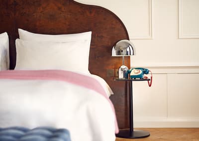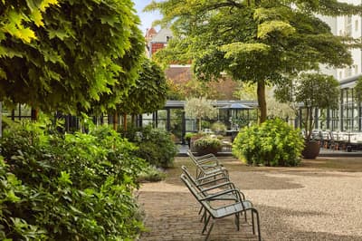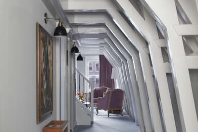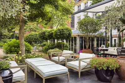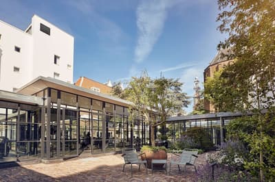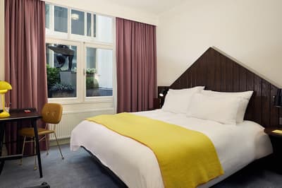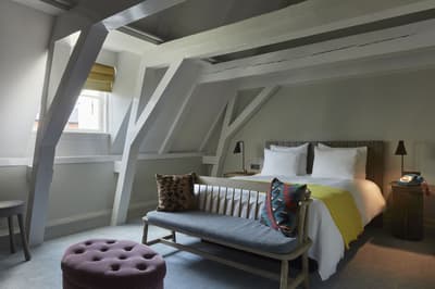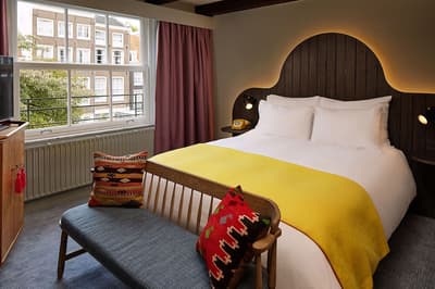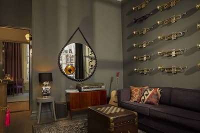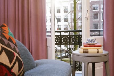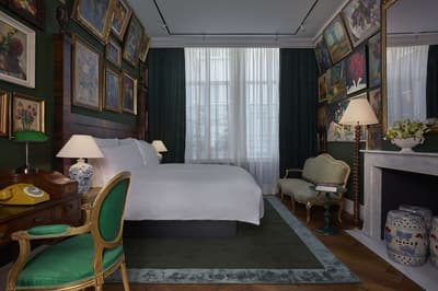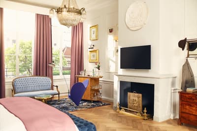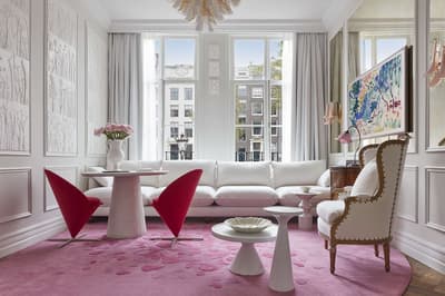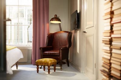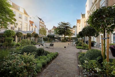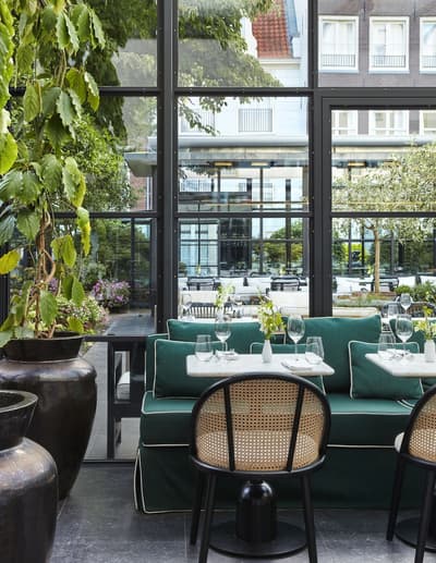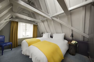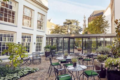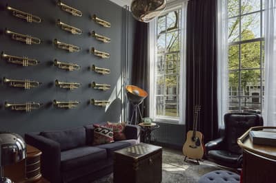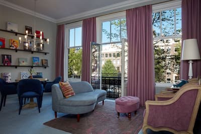 Un hôtel démesuré ! Une ville dans la ville ! Aménagé dans des bâtisses bourgeoises du 17ème et 18ème siècle, il réunit plusieurs maisons articulées autour d’un immense jardin paysagé. Des cours intérieures et des corridors relient les maisons les unes aux autres. Les bâtiments ont conservé l’esprit des lieux, avec leurs murs de briques, leurs poutres apparentes et leurs parquets d'antan. Dès l’entrée, l’imposante charpente, les ascenseurs en laiton doré, le mobilier tantôt vintage tantôt design, vous impressionneront. L'hôtel ose les couleurs et les matières ! Des œuvres temporaires ou issues de la collection du Pulitzer s’invitent un peu partout, y compris sur les façades avec une installation de vélos ! Chaque suite est unique et à thème. Amateur de musique ou de littérature, laissez-vous tenter par la suite « Music Collector’s » et sa collection de trompettes épinglée sur le mur du salon ou la suite « Book Collector’s » et son arche faite uniquement de livre ! L’hôtel possède son propre ponton sur le canal... L’occasion d’une balade à bord du bateau-salon Pulitzer, tout en teck et laiton poli, datant de 1909. Classe quoi ! Rien de mieux pour découvrir Amsterdam.