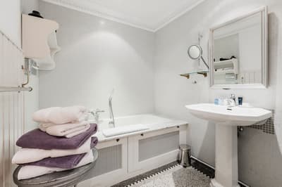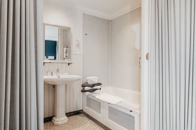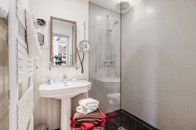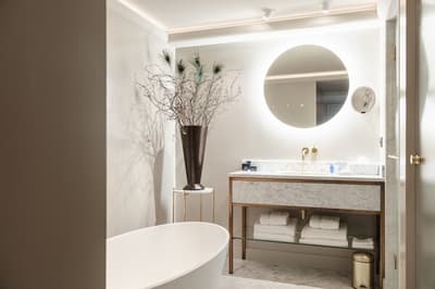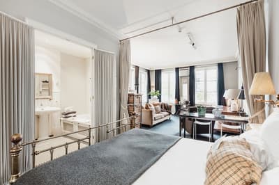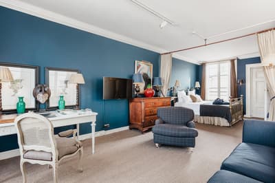 Dans un style de décoration contemporaine, elle est dotée d’un mobilier tendance, d'un plafond plus bas et nécessite de monter plusieurs volées d'escaliers. La chambre est dotée d’un lit king Loro Piana et la salle de bains est équipée d’une douche pluie et/ou baignoire walk-in. Ambiance conviviale !