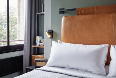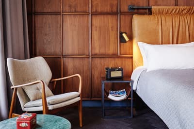 Quand on est au Hoxton, c’est comme si on était chez des potes. En clair, on s’y sent bien ! Et c’est bien là tout le concept du Hoxton : vous donner l’impression que vous êtes comme à la maison ! Car ici, après avoir monté les quelques marches à l’entrée, vous ne vous retrouverez pas dans un hall « à l’ancienne ». Non, le lobby de l’hôtel est LA pièce du Hoxton, c’est autour de lui que s’articule la vie de l’établissement. Et ajoutez à cela la déco plus que soignée, où le design scandinave se mêle savamment au bohême chic, où les petits coins douillets se succèdent et où le charme opère direct. Du parquet tout d’abord pour apporter de la chaleur. Un mur en brique pour l’authenticité. Des canapés Chesterfield dans lesquels on a envie de se vautrer. Des fauteuils clubs pour le côté vintage. Des poufs en laine, des coussins colorés, des tapis, des étagères sur les murs, des livres et des bibelots dessus, des tables basses, des luminaires au look rétro, de la lumière tamisée… Bref, on ne serait pas en train de vous décrire le salon dont tout le monde rêve ? Et attendez ce n’est pas fini, ce « salon » tellement cosy offre une vue sur… les canaux bien évidemment, et a, en plus, une cheminée pour les froides soirées d’hiver. Et lorsque le soleil pointe le bout de son nez, rien de mieux que de s’installer sur la terrasse pour regarder la vie qui s’écoule le long des canaux. Envie d’une expérience branchée et cosy ? Alors ne cherchez plus, vous êtes au bon endroit pour la vivre ! (Oh et il y a même un photomaton pour immortaliser vos plus beaux souvenirs !)