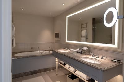 Pousser la porte du Waldorf Astoria (à moins que ce ne soit le portier qui l’ouvre pour vous !), c’est comme entrer dans un conte de fées. Mais promis, vous n’y croiserez aucune grenouille qui se transforme en prince ! Ici, on n’a pas envie de faire de bruit, on veut juste admirer et s’émerveiller. Car entre le marbre, les colonnes, les moulures qui habillent les murs et les plafonds, les lustres, les miroirs, l’escalier d’époque, la sphère armillaire ou encore les œuvres d’art, on peut le dire, au Waldorf Astoria, on entre dans une véritable oasis d’élégance et de classe à l’état pur. Et pour que le charme opère totalement, vous entendrez certains jours quelques notes de musique s’élever : tout simplement… un pianiste qui joue. Le rêve ! Le temps semble être suspendu ! Ha mais pas question de croire que vous avez débarqué dans un hôtel old school. Au contraire, vous y retrouverez les codes du luxe contemporain où des touches de couleurs comme le doré et le bleu, dont le célèbre bleu Vermeer, viennent mettre leur petit grain de folie. Vous avez l’impression d’être au max du max du bonheur ? C’est parce que vous n’avez pas encore profité du spa Guerlain ! Dans un cadre feutré et intimiste, profitez des soins Guerlain, comme l’Orchidée Impériale Prestige, l'un des soins du visage les plus célèbres de la marque. Puis, faites quelques longueurs dans la piscine du Waldorf Astoria, qui donne sur le jardin de l’hôtel. Ha oui, on ne vous pas encore parlé du petit (grand) plus du Waldorf Astoria : le jardin, grand, vert et fleuri ! Comme une envie subite de s’asseoir sur les fauteuils pour refaire le monde autour d’un verre !