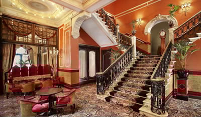 Tout le charme de l’ancien monde revisité par un décorateur d’exception ! Voilà ce qui vous attend dans cet établissement historique. Ancien palais de ville d’un conseiller du roi, le bâtiment date de 1858. Niché sur la très chic avenue Lange Voorhout, en plein centre-ville, il a été transformé en hôtel et baptisé d’après l’hôtel des Indes de Batavia, ancienne capitale des Indes néerlandaises. et du tsar Nicolas II à Mick Jagger, cette adresse mythique a vu passer bien des people et des têtes couronnées. A l’extérieur, vous êtes interpellé par la façade jaune foncé surmontée de l’ancien blason de Batavia. La dernière rénovation en date a été supervisée par le célébrissime Jacques Garcia. Son style flamboyant redonne au lieu sa splendeur d’antan. Dès l’entrée, vous basculez dans un univers feutré et luxueux. Devant vous, l’escalier d’honneur est majestueux. Le hall vous transporte dans une autre époque avec son mélange fastueux de colonnes de marbres, de dorures et de brocarts. Le salon principal, super élégant avec ses sièges en velours et ses luminaires en laiton, est parfait pour savourer un afternoon tea royal. Le resto est d’un classicisme exquis : hauts plafonds à moulures, lustres en cristal et riches tentures. Au bar, l’ambiance est plutôt glam chic avec des tabourets dorés et des fauteuils violets. Vous voulez un vrai traitement de star ? Enfilez votre peignoir : le spa vous déroule le tapis rouge !
