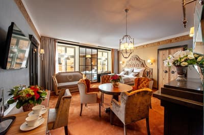 Confortable et lumineuse, elle est située aux premier, deuxième et troisième étages et donne sur la rue Grodzka (Route royale), sur la cour et sur le patio du restaurant Fiorentina. Elle peut également avoir des fenêtres de toit qui apportent une touche spéciale à la pièce.