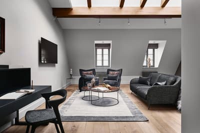Dans un style résolument moderne et soigné, elle arbore un sol en bois, un mobilier design et se complète par une finition intérieure en pierre. La chambre est dotée d’un lit double (double) ou deux lits simples (twin) et la salle de bains est équipée d’une baignoire ou cabine de douche et de toutes les commodités nécessaires. Ambiance conviviale !