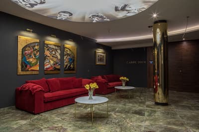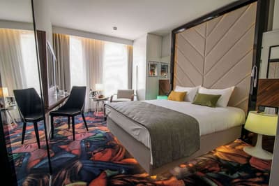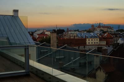 Un design hotel, un ! Dès l’extérieur, ça se voit, avec trois gros pots de fleurs aux couleurs différentes. Mais détrompez-vous, ce n’est rien face au lobby et ses immenses fresques aux murs… Puis, entre les mosaïques et les visages historiques en noir et blanc, ça va du sol jusqu’au plafond. Au moins, ça a le mérite d’être clair ! Des colonnes dorées ultra-brillantes, un tourne-disque vintage, un petit café avec des tables en bois trop mignonnes : l’INX Design Hotel porte définitivement bien son nom, vous ne saurez même plus où donner de la tête tant il y en a à voir. Une sorte de tapis digne d’une illusion d’optique se chargera de vous guider jusqu’à votre chambre. Ne faites pas attention à la moquette, aussi originale que psychédélique, c’est la lampe qui se charge de l’ambiance. L’ampoule peut changer de couleur selon vos envies. Plutôt rouge ou violet ? Ne nous cachez rien, on finirait de toute façon par l’apprendre. Il n’y a plus qu’à vous poser, si vous avez la chance d’en bénéficier, sur votre terrasse, histoire d'apprécier la vue sur le fameux château du Wawel. Inspirez un bon coup, expirez, buvez une gorgée de vin, c’est ça la vie !