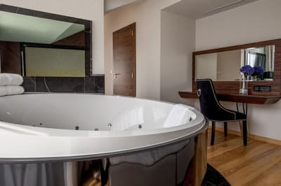 Meublée de façon originale, l’intérieur est inspiré du style Art déco combinée aux riches couleurs typiques des œuvres de la peintre Zofia Stryjeńska. Lumineuse, elle arbore des tissus tactiles et un éclairage subtil. Pour prendre votre collation, il y a un petit coin salon et la salle de bains privée en marbre est équipée d’une douche et de toutes les commodités nécessaires; le meuble lavabo est accessible aux personnes à mobilité réduite. Ambiance conviviale !