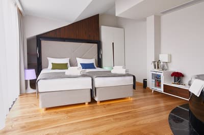 Meublée de façon originale, l’intérieur est inspiré du style Art déco combinée aux riches couleurs typiques des œuvres de la peintre Zofia Stryjeńska. Lumineuse, elle arbore des tissus tactiles et un éclairage subtil. La chambre est dotée de lits jumeaux et la salle de bains privée en marbre est équipée d’une douche et de toutes les commodités nécessaires; le meuble lavabo est également accessible. Ambiance conviviale !