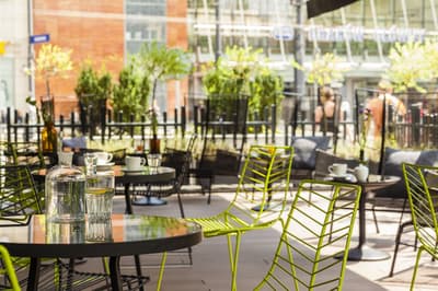 Un hôtel aux airs de musée d’art contemporain ! Vous suivez ? Bon, calmez-vous hein, ce n’est pas non plus le Tate Modern ou le MoMA. Encore heureux ! Mais ça ne l’empêche pas d’avoir un aménagement intérieur design des plus contemporains. Dès sa façade, ça se voit, on se croirait presque à Berlin ! Ensuite, vous entrez dans le lobby, où la modernité se combine avec le bon goût, et où les tons sombres sont éclairés par la lumière. Même le resto de l’hôtel propose des plats inspirés par l’art contemporain, c’est dire ! Bonus : du thé et du café y sont en libre-service à longueur de journée. Les chambres, elles, laissent entrer la lumière naturelle, et offrent un design toujours original et coloré. Certaines salles de bains, par exemples, sont faites de noir et de bleu. Quant à la salle de sport, elle possède un sol rose laqué hyper stylé. Mais allez, vous n’allez pas rester à l’intérieur ! Cet arc-en-ciel continue à l’air libre grâce à une jolie terrasse colorée avec du gazon et des transats, où des films sont diffusés en plein air et où des petits pique-niques sont organisés dans l’herbe. De quoi sociabiliser un peu ! Enfin, pour un 4 étoiles, l'hôtel est quand même très high-tech. Regardez, la lumière des toilettes s’allume dès que votre pied touche le sol. Incroyablement pratique la nuit, voilà la touche de couleur ultime !