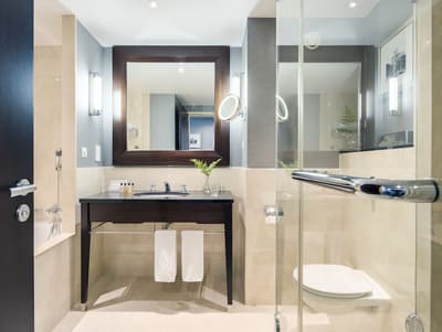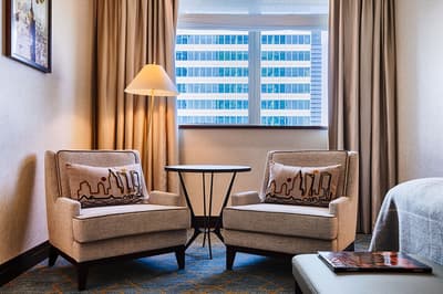 Le top ! Très spacieuse, elle est agréable et confortable et dispose de tout le nécessaire pour un séjour merveilleux. Les grandes baies vitrées profitent d’une vue superbe sur la ville vibrante. Elle accommode un grand lit king et le salon est complètement aménagé. Salle de bain chic.