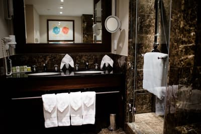 Cette belle chambre a tout le nécessaire pour un séjour agréable et confortable. Elle accommode un lit queen, un grand lit king ou des lits jumeaux. Salle de bain chic.