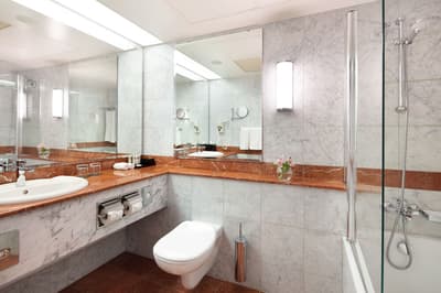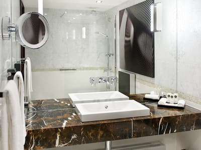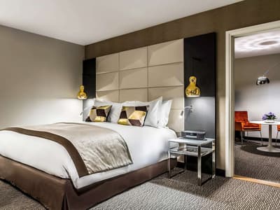 Agréable et confortable, elle a tout pour un séjour des plus superbe ! Cette belle chambre accommode un grand lit king ou des lits jumeaux. Petit coin salon avec fauteuils. Salle de bain chic marbrée.