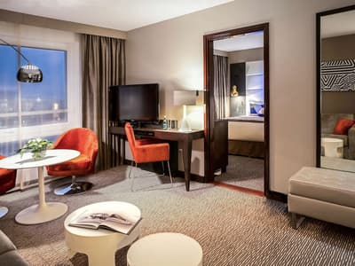 Superbe ! Très spacieuse, elle a tout le nécessaire pour un séjour des plus merveilleux. Agréable et confortable, elle dispose de 2 pièces. La chambre accommode un grand lit king et le salon est meublé d’une table à manger et de beaux fauteuils. Salle de bain marbrée avec douche et baignoire.