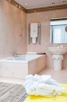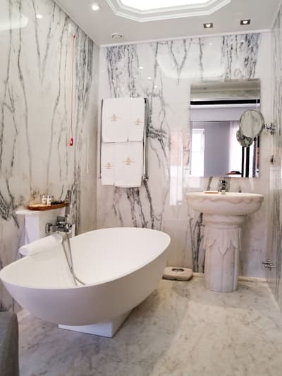 Composée de deux chambres indépendantes, la décoration est plutôt moderne avec un beau parquet, un mobilier vintage relooké, un lustre plafonnier élégant et se complète dans des tons chaleureux. Les deux salles de bains en marbre portugais sont équipées d’une baignoire romantique et d’une douche à l'italienne. Ambiance cosy !