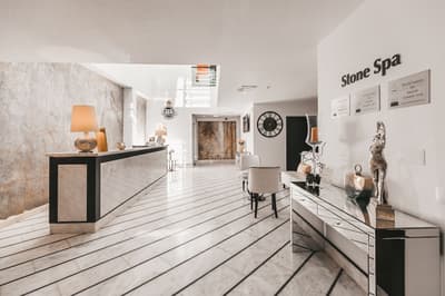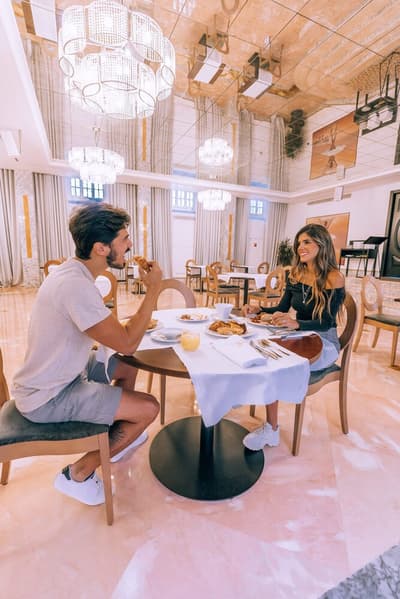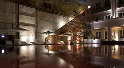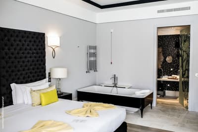 Vous cherchez une escale luxueuse dans l’est de l’Alentejo ? Au cœur de la ville de Vila Viçosa, l’Alentejo Marmoris Hotel & Spa est fait pour vous. Derrière la façade blanche de cet immeuble ancien du centre-ville se trouve une abondance de marbre absolument dingue ! Normal, la ville est connue pour ça : des carrières de marbre se trouvent juste à côté. Résultat, vous n’avez jamais vu une telle variation de couleurs et de textures pour cette matière noble si chic ! Et cet esprit chic continue dans les chambres, puisque les salles de bain sont nappées de marbre rose. Avec un esprit baroque noir et blanc charmant, pour dialoguer avec ce luxe. A l’intérieur, on trouve aussi une très belle cour où trône une piscine agréable qui se couvre durant l’hiver, pour pouvoir en profiter tout le temps. Autre point fort : le spa hallucinant, avec du marbre of course. Et avec piscine intérieure et salles de soin pour s’offrir une petite parenthèse bien-être. On adore ! Enfin, le lieu vaut aussi le détour pour sa table : le restaurant propose une très belle cuisine inspirée de la région en version gastronomique orgasmique. L’établissement vise carrément l’étoile ! Bref, un hôtel vraiment top. A faire de préférence en amoureux ;)