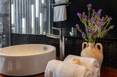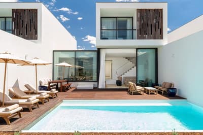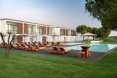 Une escapade ressourçante dans les plaines de l’Alentejo, au milieu des oliviers et des arbres fruitiers, avec spa et piscines sur place ? C’est à l’Octant Evora qu’il faut poser vos valises ! Vous serez d’abord charmés par la paix qui se dégage des lieux : si vous cherchez des vacances actives et bruyantes, passez votre chemin. Ici tout est calme et volupté. L’hôtel à l’architecture moderne s’imbrique totalement dans ce paysage ultra-naturel. Murs blancs et matériaux naturels, et surtout le bois, donnent une ambiance zen à ce temple de la déconnexion. Les chambres, spacieuses, ont été pensées dans ce sens, en valorisant les couleurs et l’artisanat de la région, avec une terrasse ouverte sur cette campagne inspirante. Deux piscines extérieures complètent une piscine intérieure qui se trouve au cœur du spa. Ici vous attendent des instants de refuel intense au sauna, au hammam ou étendus sur une table de massage pour un soin purifiant à base d’huile d’olive. Dans ce domaine de 11 hectares, on produit d’ailleurs des olives et de l’huile servies à table ! Le resto célèbre l’art culinaire portugais et les produits locaux, souvent issus directement du potager et de la ferme sur place. Une adresse à retenir pour un passage dans l’Alentejo en quête de quiétude intense. Très bien en couple ou en famille, peu importe ! Et dernier point important : l'hôtel est ecofriendly !