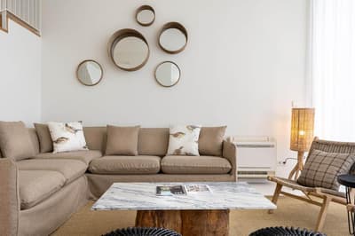 La décoration est plutôt minimaliste avec un élégant mobilier en bois, des pièces faisant référence à l'artisanat de la région et l’ensemble se complète dans des tons clairs. La chambre est dotée d’un lit double de 1,80 m et d’un canapé-lit. La salle de bains en marbre est équipée d’une baignoire. Ambiance cosy !