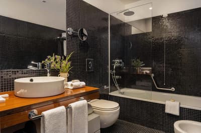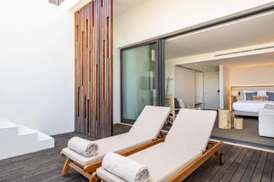 Elle profite d’une grande terrasse donnant accès direct à la piscine d’où vous pourrez nager de jour comme de nuit. Vous pourrez vous détendre dans les transats et contempler les vues privilégiées sur l'espace extérieur tout en profitant du soleil.