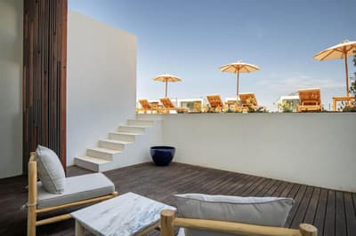 Orientée vers l’ouest, elle profite d’un accès direct à la piscine pour nager de jour comme de nuit et dispose d’une grande terrasse d’où vous pourrez vous détendre sur les transats tout en prenant des bains de soleil.