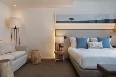 Bureau, Mini-bar, Téléviseur LCD, Mobilier extérieur, Coffre-fort, Tabouret au pied du lit, Table avec deux chaises, Fauteuil.