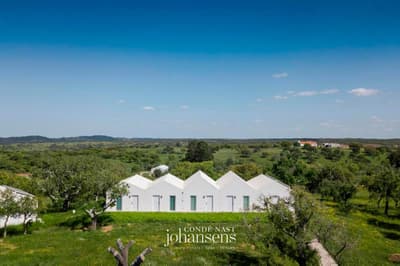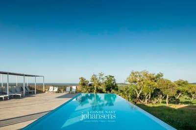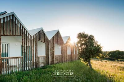 Un hôtel design intégré dans la végétation et les beaux paysages de chênes-lièges de l’Alentejo, avec piscine à débordement.