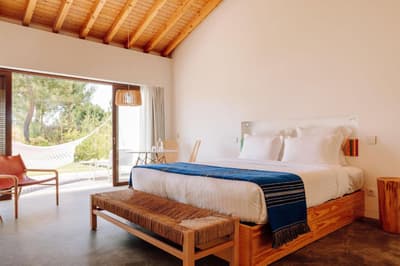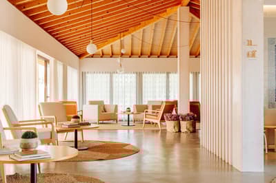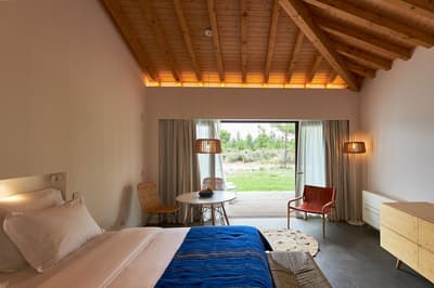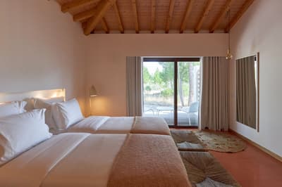 Bienvenue dans cette vision sublime de l’Alentejo au milieu des dunes et des pins maritimes enivrants ! Le Spatia Comporta vous attend pour une parenthèse de déconnexion. Un petit hôtel intimiste d’une vingtaine de chambres et de quelques villas exclusives dotées majoritairement de piscines privées, pour une échappée belle à la portugaise comme on aime ! On se laisse envoûter par ces teintes naturelles et cette harmonie visuelle de beiges et d’ocres qui contrastent avec la piscine bleu clair. L’architecture moderne apporte une jolie touche. Assez chic avec une déco minimaliste ultra tendance. Installez-vous sur votre terrasse, ou carrément sur votre hamac et laissez le temps se suspendre. Les chambres offrent un style épuré inspiré de l'architecture japonaise. On adore ! En plus, ici, on se régale vraiment à la table du resto, avec des produits locaux sublimés avec goût et modernité, sans en faire trop ! Même les petits-déjeuners sont à tomber. Côté activités, entre deux ploufs, vous pouvez réserver une excursion pour aller observer les dauphins dans l’estuaire de Sado ou visiter l’un des vignobles de la région. Le soir, on se délecte d’un délicieux cocktail en regardant le ciel dégrader ses couleurs, dans cette campagne si paisible. Un vrai shot d’inspiration et de tranquillité à s’offrir aussi bien en couple qu’en famille.
