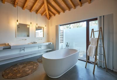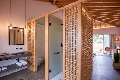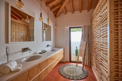 La décoration est plutôt chaleureuse et allie les traditions de la région à une approche contemporaine. Aérée et lumineuse, elle comporte un mobilier en osier, des tapis de jute et des accessoires de décoration artisanales. Les chambres sont dotées de lits confortables et la salle de bains spacieuse est équipée d’une baignoire autoportante, d’un double vasque et de toutes les commodités nécessaires. Ambiance champêtre !