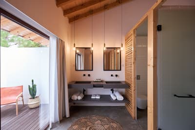 La décoration est plutôt chaleureuse et allie les traditions de la région à une approche contemporaine. Aérée et lumineuse, elle comporte un mobilier en bois élégant, des luminaires design et des accessoires de décoration artisanales. Les chambres sont dotées de lits confortables et la salle de bains est équipée d’un double vasque, d’une douche à effet pluie et de toutes les commodités nécessaires. Ambiance champêtre !