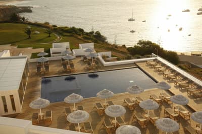 Si vous aimez les vues panoramiques sur la mer, les plages sauvages, les paysages dépouillés et l’architecture assortie, vous allez adorer Memmo Baleeira. Des petits bâtiments blancs, une déco épurée, voire immaculée, un comptoir de lobby en verre poli bleuté, du mobilier de designer, du bois blond… tout est calé pour ne pas dénaturer le parc del Costa Vicentina, voisin de l’hôtel. Au bord de la piscine, vous marchez pieds nus sur un caillebotis tanné par le soleil. Pour accéder jusqu’à la plage, en contrebas, vous empruntez un long ponton tout en bois, grisé par le temps et les embruns. Ici, on vient pour quelques postures de yoga ou pour voir le soleil se coucher. En remontant jusqu’à l’hôtel, vous faites escale au spa, pour un massage anti-stress ou un enveloppement détoxifiant. Vous prenez le temps d’un verre de vin portugais, en terrasse face à l’océan. Vous retrouvez vos enfants au club qui leur est dédié. Vous faites un dernier plongeon dans la piscine chauffée, avant de dîner au clair de lune d’un bar fraîchement pêché. Les journées s’étirent dans une nature préservée et un hôtel qui respecte son précieux environnement.