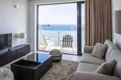 Pour des vacances familiales au bord de la mer, cette suite offre une vue sur l'océan et le port de Baleeira que vous pourrez contempler du balcon tout en profitant du soleil.