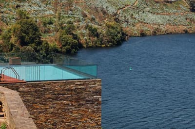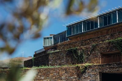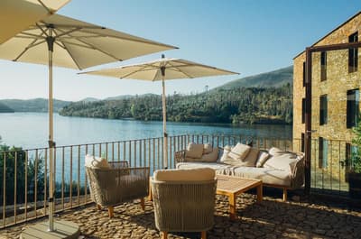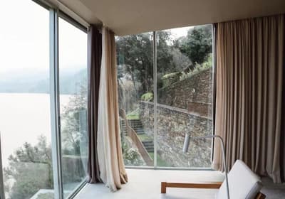 Un hôtel contemporain minimaliste construit au bord du Douro avec des matières naturelles, offrant un spa et 3 piscines.