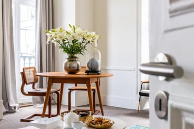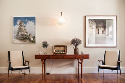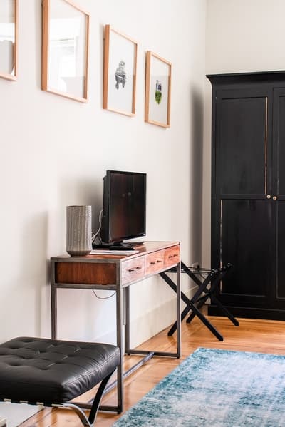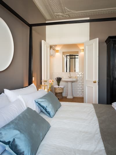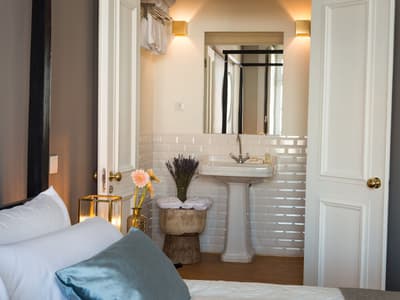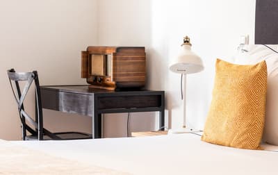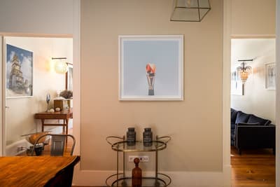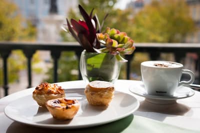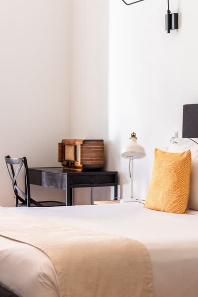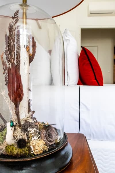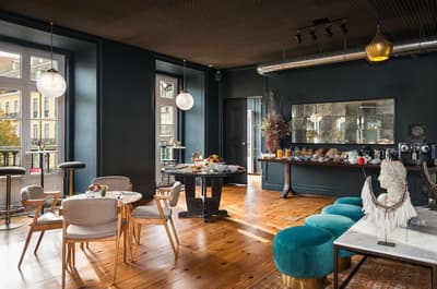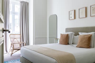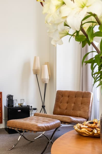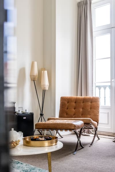Pousser la porte du Consulat, c’est s’imprégner au plus près de la vie de Lisbonne. Parce que le bâtiment a été celui de l’ancien consulat du Brésil, durant un peu plus d’un siècle. Parce qu’ici, vous êtes dans le cœur historique de la ville. Parce qu’une sélection de 200 œuvres, issues des galeries d’art lisboètes les plus en vue, sont exposées, accrochées, suspendues, à travers tout l’hôtel. Le principe : à chaque suite et appartement, sa galerie. A cela s’ajoute des objets de curiosité disséminés au bar comme au restaurant. Si bien que lorsque vous déambulez dans les deux étages réservés au Consulat, dans l’immense bâtiment de la place Luis de Camoes, votre regard est sans cesse sollicité par une gravure, une peinture, une sculpture… mais aussi par les moulures des plafonds, les parquets restaurés, les volets intérieurs d’autrefois. Une impression de voyage dans le temps dans un écrin très contemporain. Les meilleurs spots ? Le balcon de votre chambre à l’heure du petit déjeuner, face à Lisbonne qui se réveille et commence à vivre et vibrer. Le bar à vins ultra cosy et le salon hyper confortable où les « coworkers » sont les bienvenus. Là, vous checkez vos mails et passez vos appels téléphoniques installé dans un canapé profond, avec lumière tamisée, table basse XXL, et le barman qui s’inquiète dès que votre tasse ou vote verre est vide.
