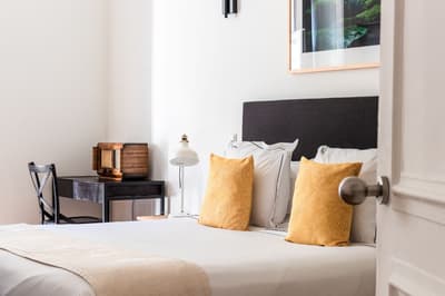 Décorée avec goût, elle arbore un plancher en bois, des accessoires design et se complète dans des tons chaleureux. La chambre est dotée d’un lit confortable à baldaquin et la salle de bains est bien équipée. Le tout dans une atmosphère conviviale !