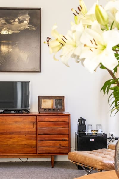 Dans un décor raffiné, elle arbore un plancher en bois, des accessoires design et se complète dans des tons chaleureux. La chambre est dotée d’un lit King size confortable et la salle de bains est bien équipée. Le tout dans une atmosphère conviviale !