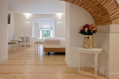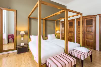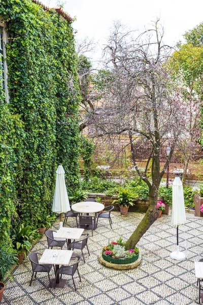 Envie de vivre votre break lisbonnais à l'ombre des cyprès et autres pins parasol ? Voici une adresse pour vous ! Ancien couvent du 17e siècle, le York House s'est récemment converti aux extravagances de l'hôtellerie de charme. Au cœur du quartier de Lapa, il semble baigner dans le repos le plus total, alors qu'en réalité, il n'est à quelques dizaines de minutes des nombreux points d'intérêt de la ville. Au premier abord, cette ancienne maison religieuse montre une certaine austérité. Mais les portes une fois poussées, c'est un monde de couleurs, d'une coquetterie presque excentrique, qui se dévoile à vos yeux ! Dans les espaces communs comme dans les chambres, des plafonds voutés et des poutres anciennes rappellent ici et là l'histoire du bâtiment, aujourd'hui doté de tout le confort moderne. Un lieu de caractère, dans lequel vous aimerez perdre votre temps, prendre du recul et gagner en sagesse, affalé dans l’un des hamacs du parc... La table ? Aussi conviviale que délicieuse, du genre cuisine gastronomique qui glane dans les produits de la région. Et qui, les jours d'été, vous offre les joies d'une terrasse avec vue sur les jardins ! Exquis.