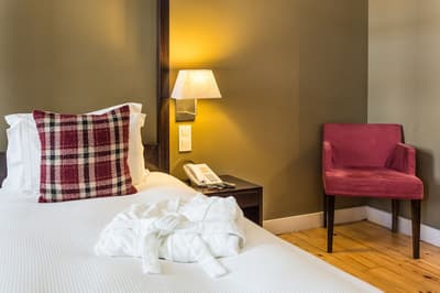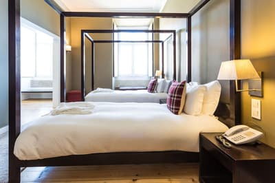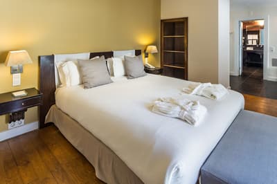 Plus spacieuse, cette belle suite offre encore plus d’espace et de confort. Une belle vue sur la ville peut être appréciée par sa fenêtre. Elle accommode un grand lit ou des lits simples et dispose de beaux fauteuils dans un coin de la chambre. Salle de bain chic.