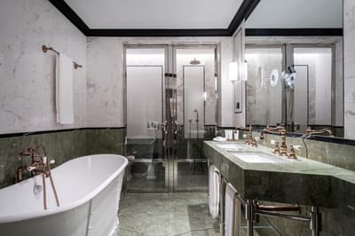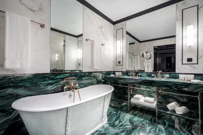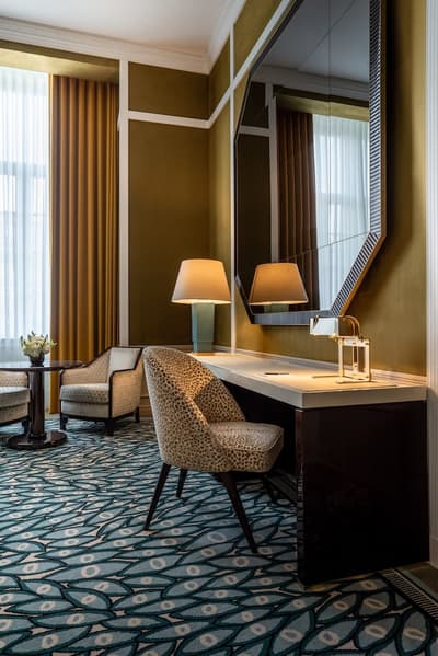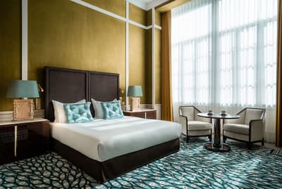L’hôtel a élu domicile en lieu et place d’un ancien café, qui était le plus renommé de Porto dans les années 1930. Depuis, on a rénové le bâtiment, bien sûr, mais préservé l’esprit d’une époque guidée par l’art de vivre. Résultat : quand vous entrez, vous êtes bluffé par le marbre blanc d’Estremoz, la ferronnerie noire, les colonnes, les hauts plafonds et l’escalier Art Déco. Vous allez aimer vous attarder dans la bibliothèque, feutrée, cosy, riche de 3 500 livres anciens dans toutes les langues. Ambiance tout aussi chaleureuse dans le salon du rez-de-chaussée, avec cheminée et fauteuils ultra-confortables. Puis, dans les couloirs qui mènent à votre chambre, vous marchez sur une moquette verte imprimée léopard, tel un clin d’œil à l’Orient Express des années 30. C’est chic, élégant, jamais clinquant. Vous avez l’impression d’être dans une grande maison de Porto, où vous avez votre pied-à-terre avec vue sur la vie de la ville. Le tout agrémenté d’un spa griffé Nuxe de 350 m², où l’on va vous chouchouter. Rien que le soin signature « Monumental palace », massage relaxant de la tête aux pieds, vous transporte dans une bulle de sérénité. Quant à la douche sensorielle, elle vous relaxe un max ! Vous êtes allongé sous une chorégraphie de jets d'eau massants, parfaitement coordonnée : idéal après une journée de travail ou de découverte de Porto.