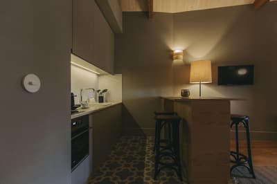 Ce petit studio est confortable et agréable. Sa grande baie vitrée offre une vue reposante et merveilleuse sur la ville vibrante. Elle accommode un grand lit et dispose d’un canapé-lit dans le salon. Très pratique, elle bénéficie d’une table à manger et d'une kitchenette. Salle de bain chic.