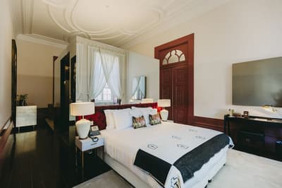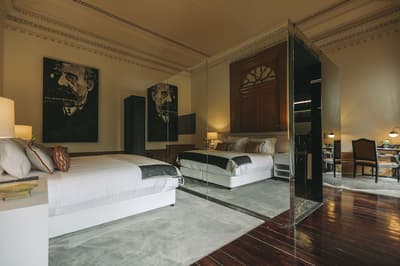 Un véritable conte de fées ! Imaginez siroter un petit porto dans la bibliothèque, emprunter l’escalier magistral qui mène au dôme de verre, et dormir dans un lit immense sous un plafond aux ornements en stucs aussi fins que de la dentelle... Ou bien vous promener sous la pergola aux lustres majestueux, avant de plonger dans une eau couleur émeraude ou de vous offrir un massage au spa. Vous l’aurez compris, on vit un rêve éveillé au Torel Palace Porto, magnifique demeure datant de l’époque romantique ! Rénové, il mêle avec brio esprit d’antan et éléments modernes. Les 24 chambres et suites en sont l’exemple parfait, surtout celles où trône un impressionnant cube paré de faces en miroir. Chacune rend hommage à un écrivain ou à un poète portugais — vous saurez qui grâce au nom que porte la chambre et au portrait qu’elle abrite ! Le restaurant « Blind » fait aussi référence à un grand nom de la littérature, et c’est ici que vous attend, encore une fois, une expérience mémorable. Pour un réveil de bonne humeur, avec un petit déjeuner copieux, ça se passe en terrasse si le beau temps le permet. Gros coup de cœur pour cette adresse portugaise, où l’on se fait chouchouter de l’arrivée jusqu’au départ.